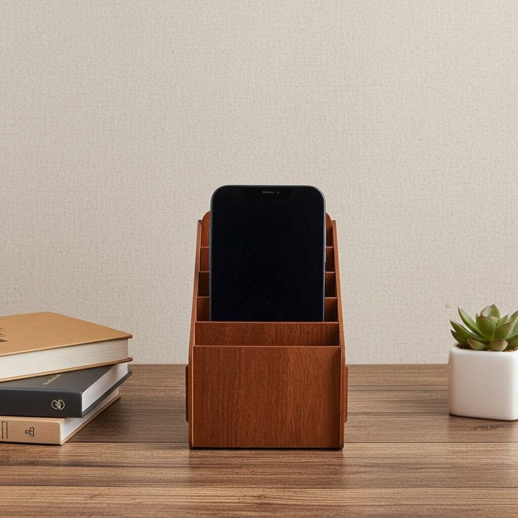 Cutie telefoane 6 compartimente- din lemn, tăiat cu laser, elegantă și practică.