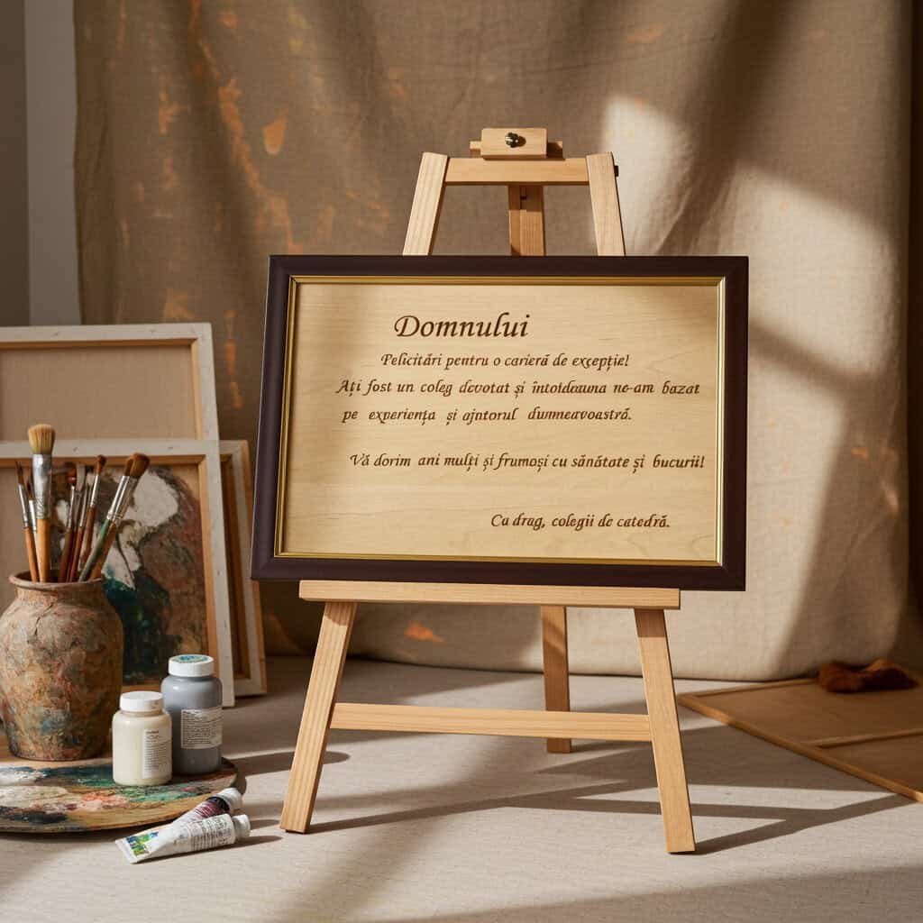 „Placheta de pensionare din lemn a fost cadoul perfect pentru tatăl meu. Gravura este impecabilă și a fost extrem de apreciată.” – Elena M.